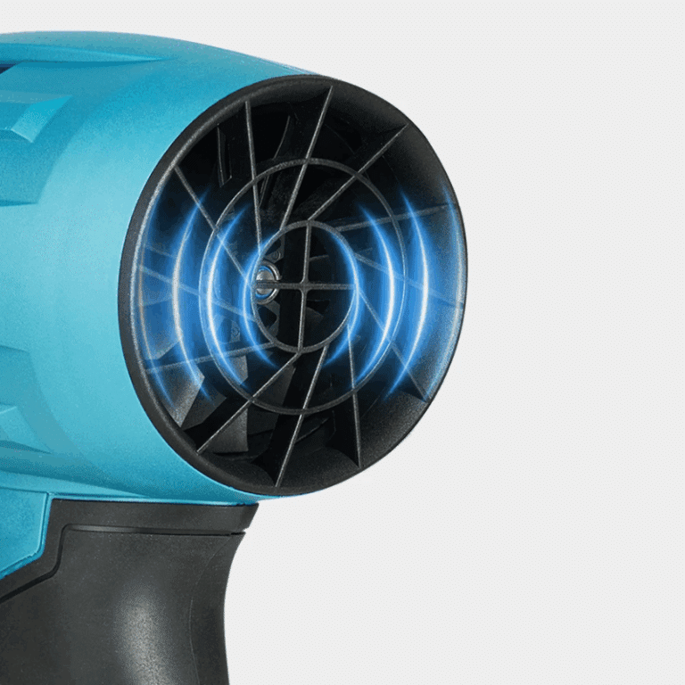 - Maximální rychlost foukání: cca 160 m/s – silný proud vzduchu pro efektivní výsledky