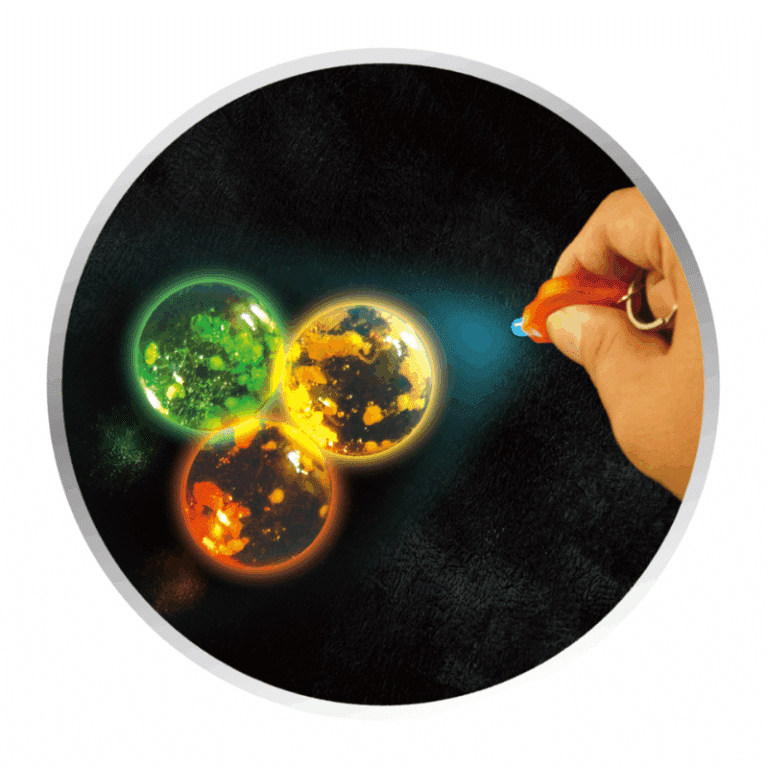 Glow kuličky lze “nabít” světlem. Po spuštění se rozsvítí a vytvářejí nádherný světelný efekt uvnitř průhledných trubek.