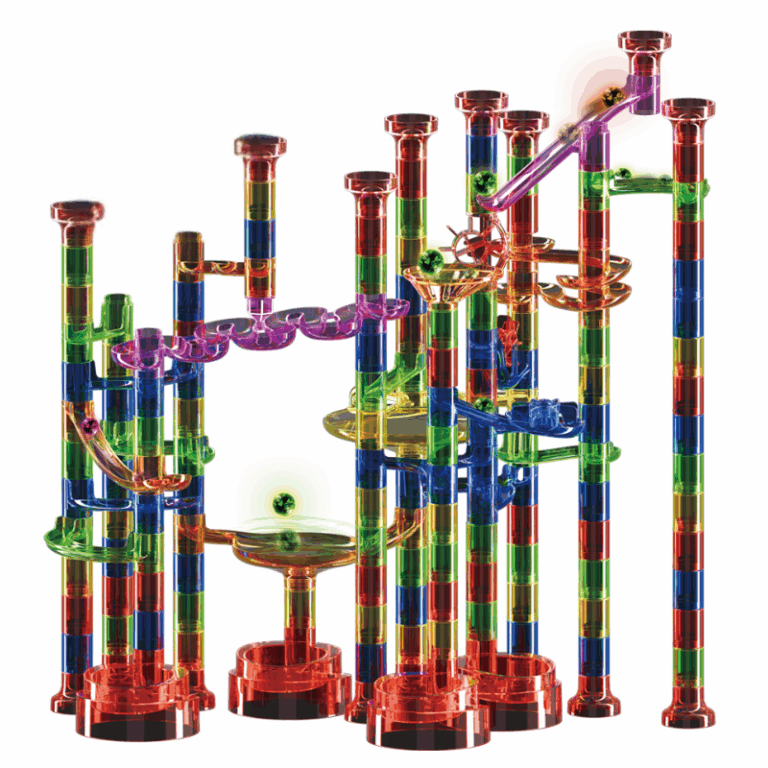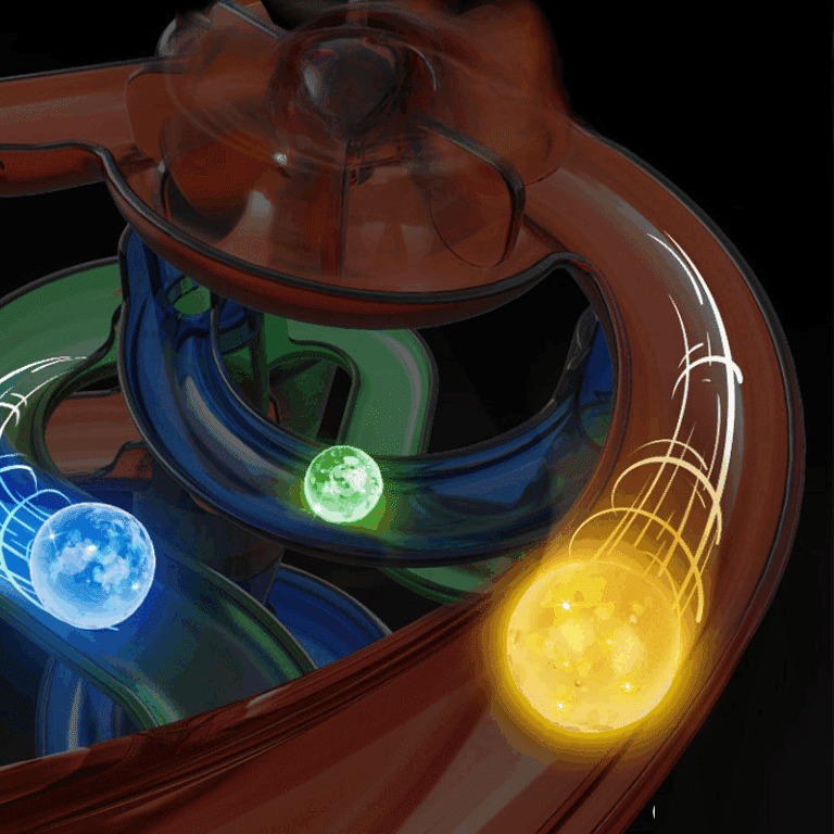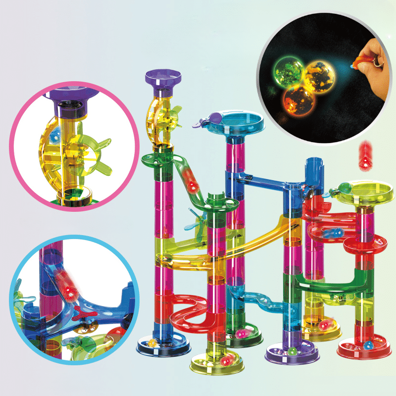 Objevte úžasný svět barevných tras, zatáček a svítících kuliček! Tato stavebnice umožňuje postavit vlastní kuličkovou dráhu plnou světelných efektů. Průhledné barevné díly a zářící kuličky promění každou hru ve fascinující podívanou.