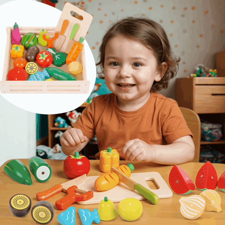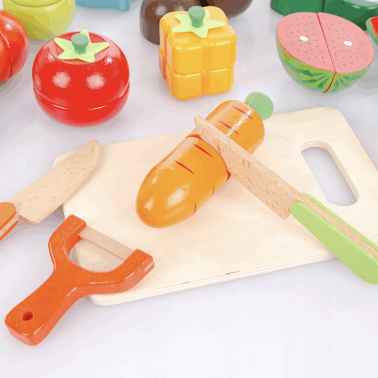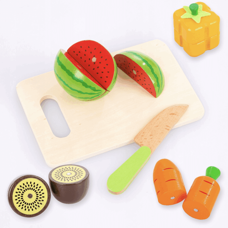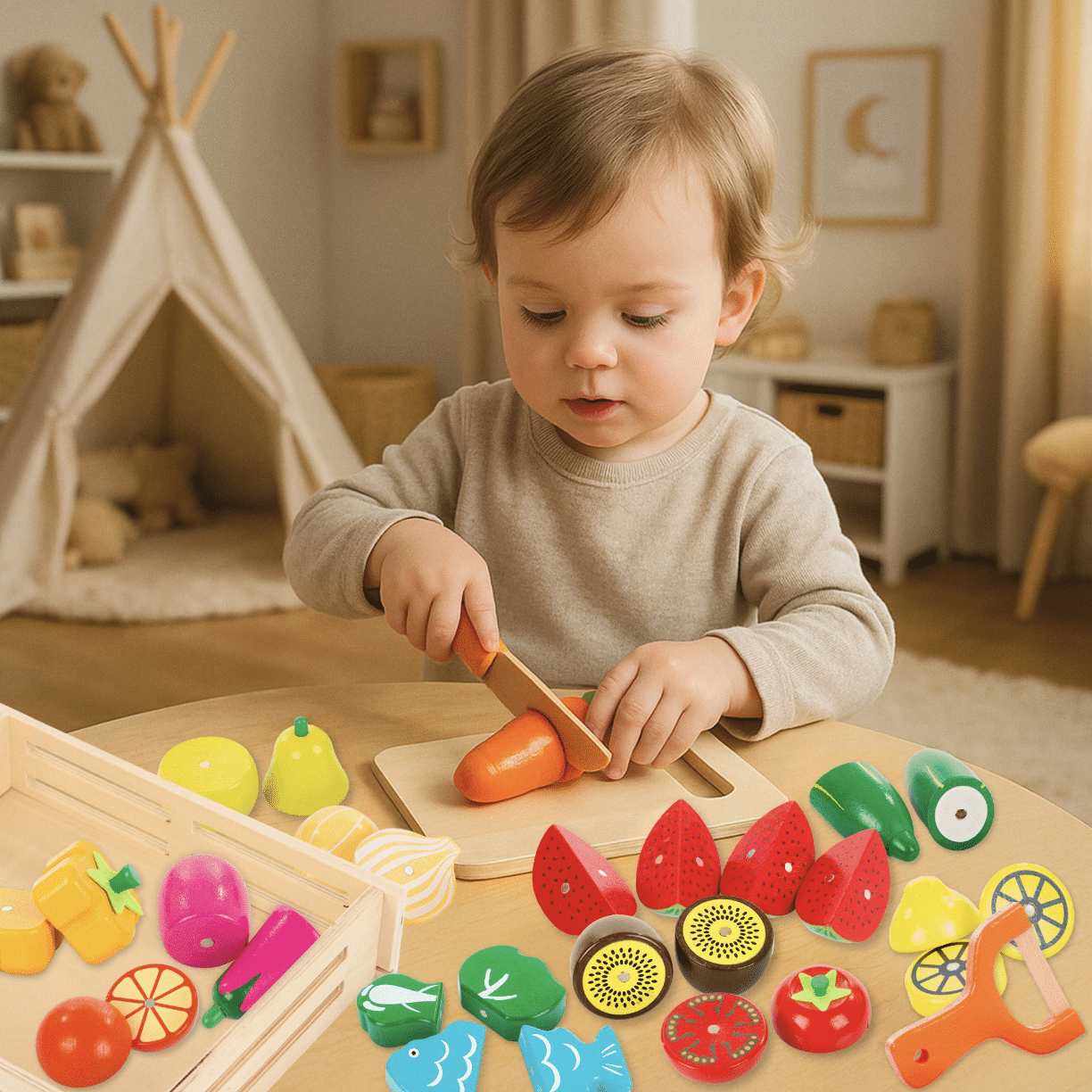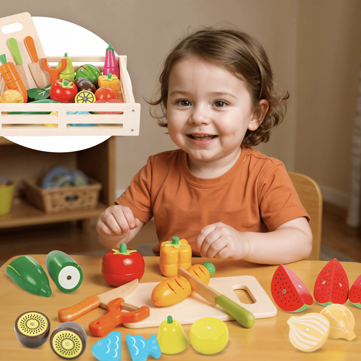 Vaření může být zábava už od malička. S naším dřevěným setem ovoce a zeleniny se děti naučí poznávat potraviny, trénují šikovnost a zažívají radost z vlastních „receptů“.