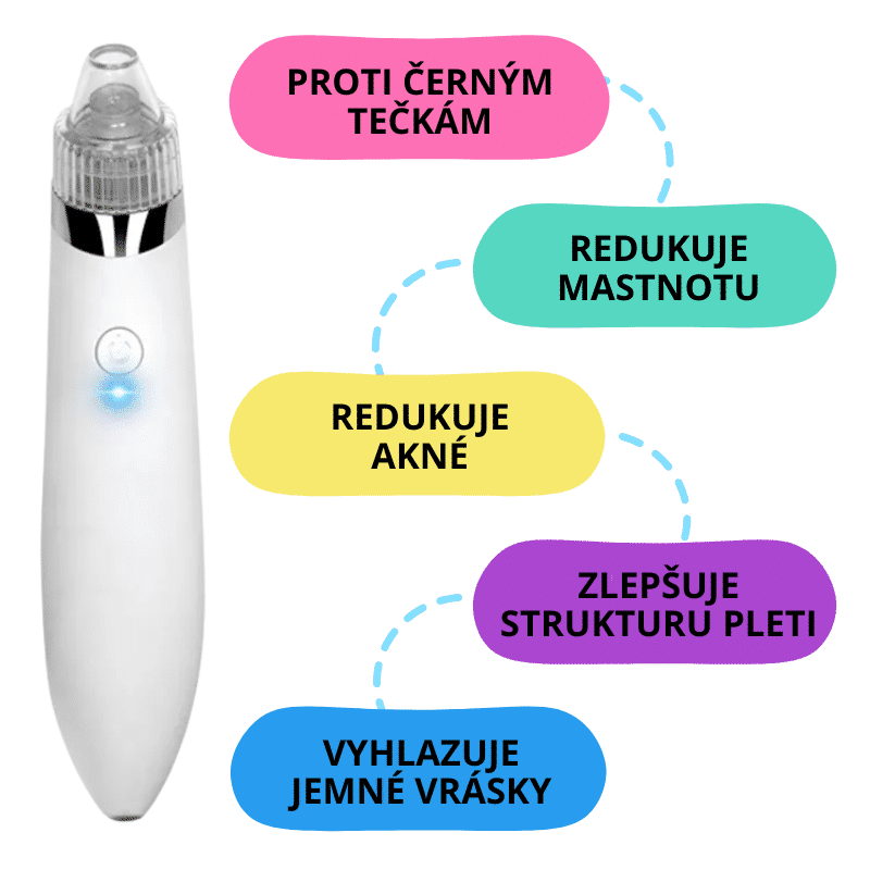 Vakuový čistič pórů pomáhá odstraňovat černé tečky, pupínky a odumřelou pokožku bez použití drsných chemických látek. Díky nastavitelným úrovním sání a vyměnitelným hlavicím je ideální pro všechny typy pleti.