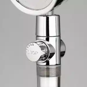 - Držadlo hlavice obsahuje ovládací přepínač pro vypnutí vody, což je praktické například při mydlení. Použitím tohoto přepínače můžete nejen ušetřit vodu, ale také udržet stále stejnou teplotu vody.